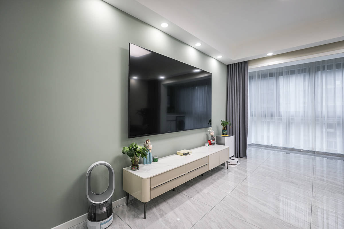 客廳的背景采用了跳色乳膠漆,這是一個點睛之筆,完美的融入到整體風格之中。