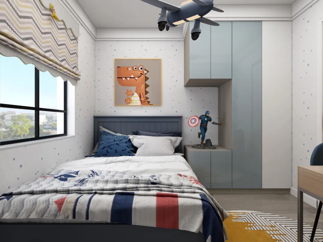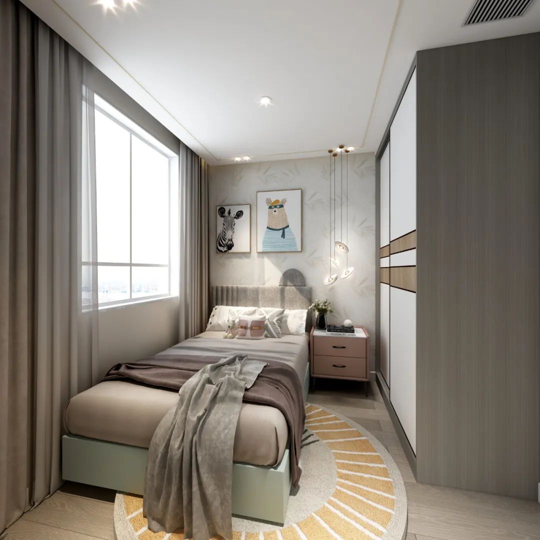 而且小臥室如果作為小孩房的話,有一側靠墻布置,還可以給孩子帶來安全感,不用擔心睡覺時候轉身不小心滾到床下。