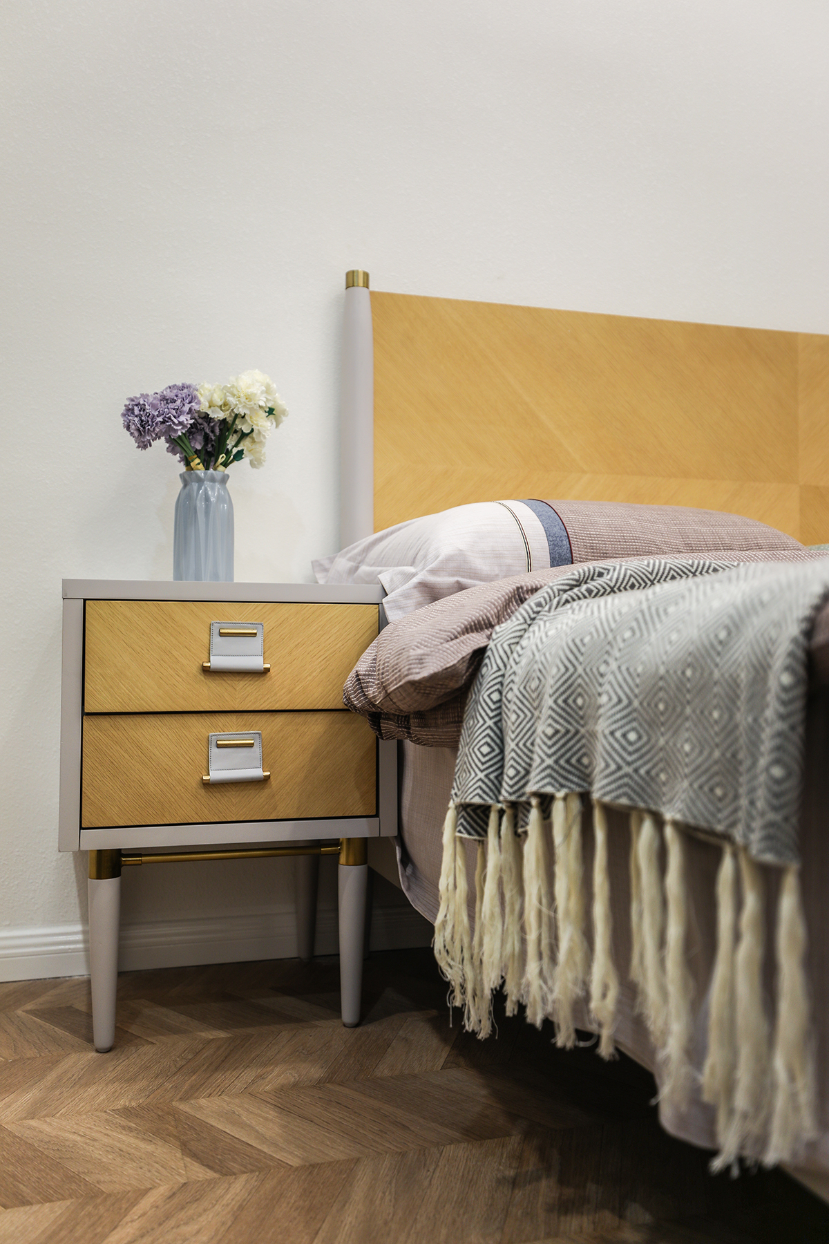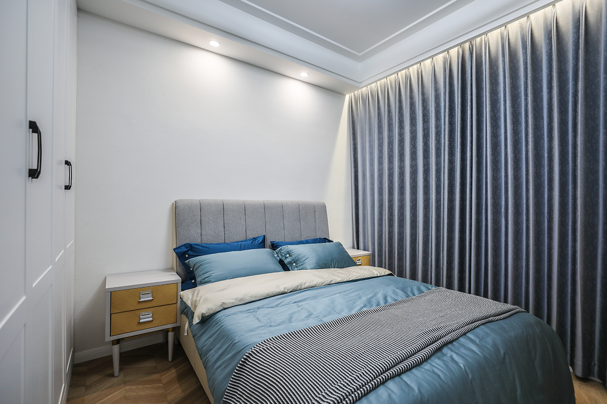 主臥低調(diào)而素雅的藍(lán)灰色窗簾,床頭柜綠植的擺放,都將自然氣息融入進(jìn)來(lái),營(yíng)造出愜意的睡眠環(huán)境。