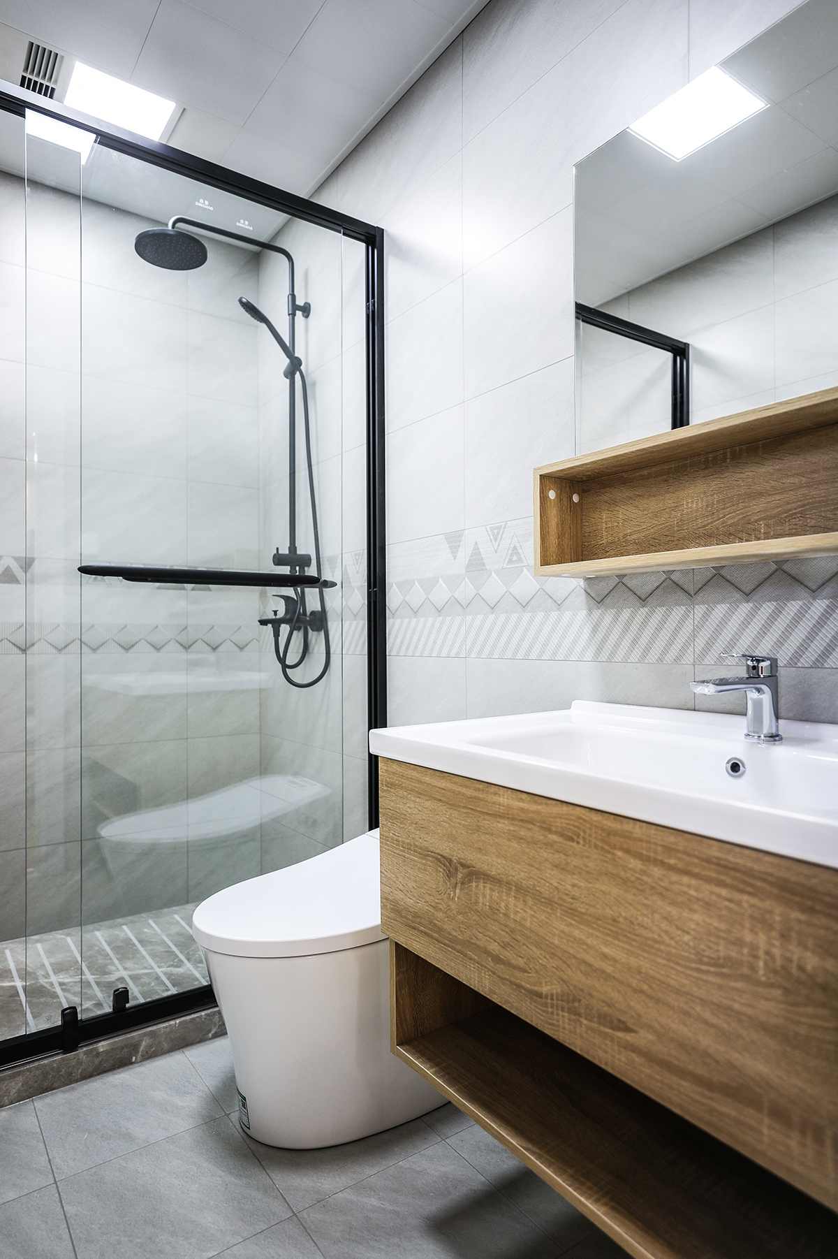 衛(wèi)生間結(jié)合主題木色北歐風(fēng),大大地提升空間視覺(jué)感,淋浴房既實(shí)用又美觀。