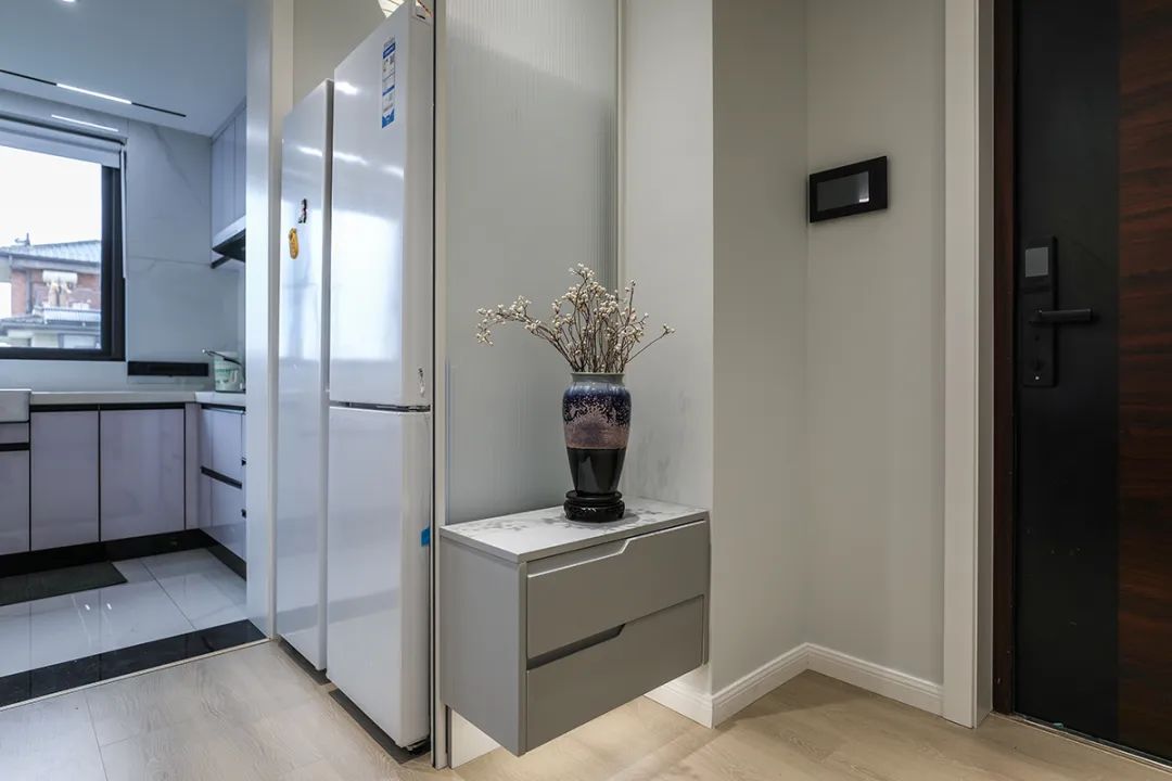 走廊一側墻面做收納柜,增加收納也顯得簡潔利落。