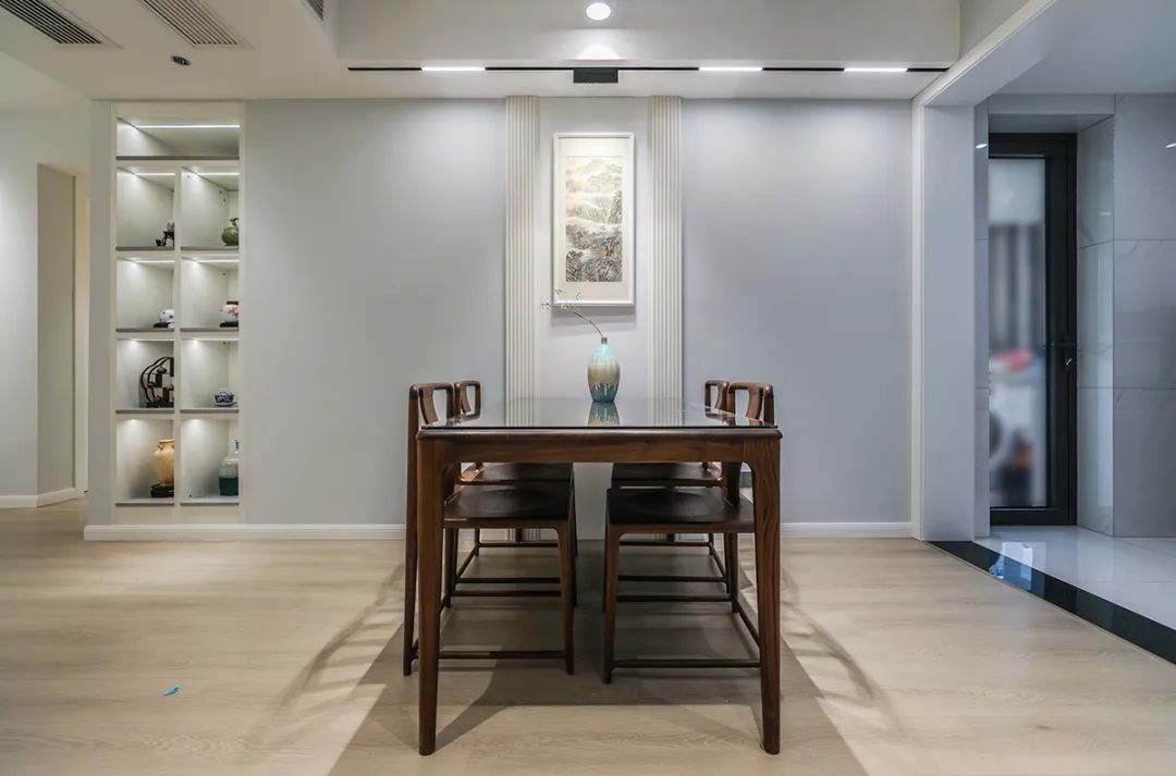 2、層次感的墻身配合縱深感的裝飾畫,餐邊柜也上墻了。