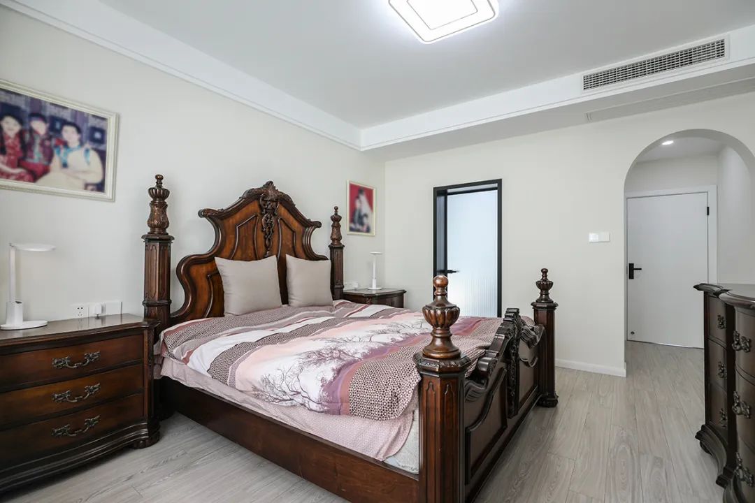 臥室床頭的位置其實可以做成定制床頭吊柜,瞬間整個角落高級感十足!