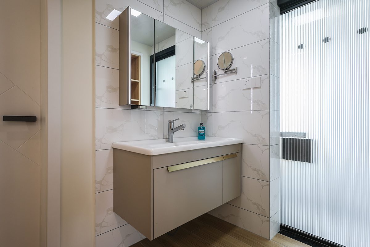 衛生間采用干濕分離,原有門洞改了在餐廳,增加了收納空間。