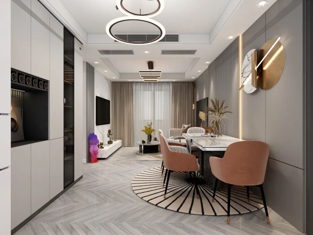 有凹陷的墻就完全可以利用,沒有的話也可以再做成一整面墻的餐邊柜,整潔大氣。