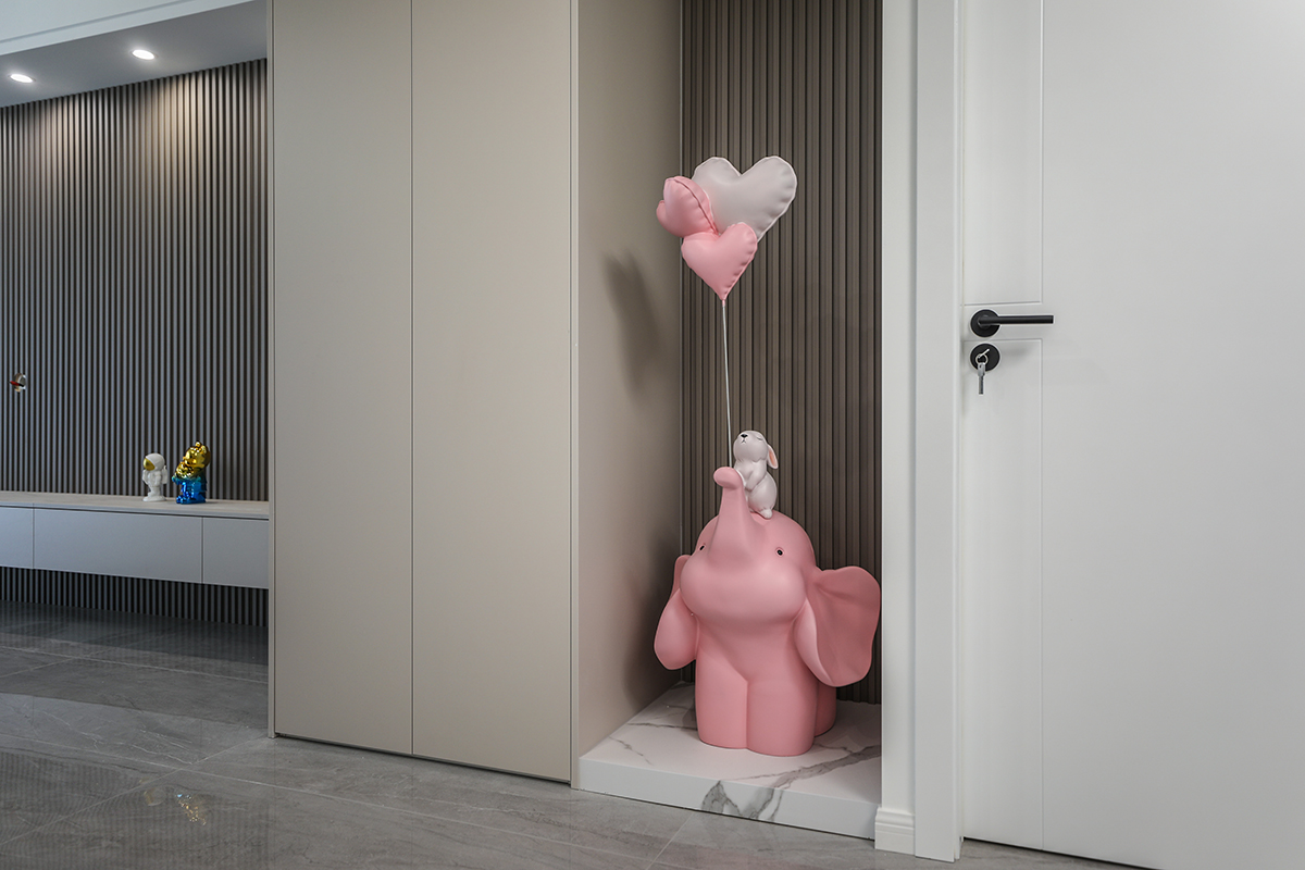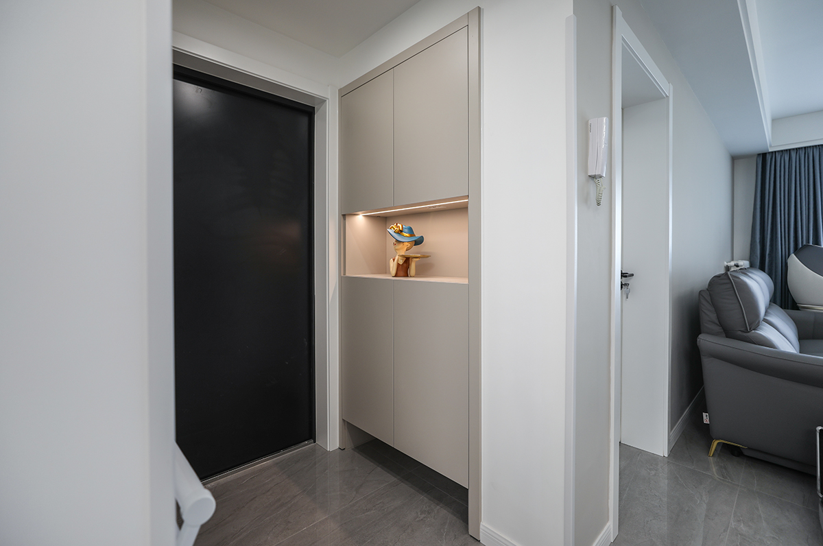 設(shè)計(jì)師在原來(lái)的戶型基礎(chǔ)上重新規(guī)劃區(qū)域,使戶型更合理,利用率更高,玄關(guān)造型,收納美觀兩不誤。