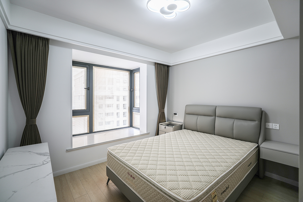 次臥是女兒房,設(shè)計(jì)師將窗戶設(shè)計(jì)成飄窗,房間如今變得既寬敞又舒適。