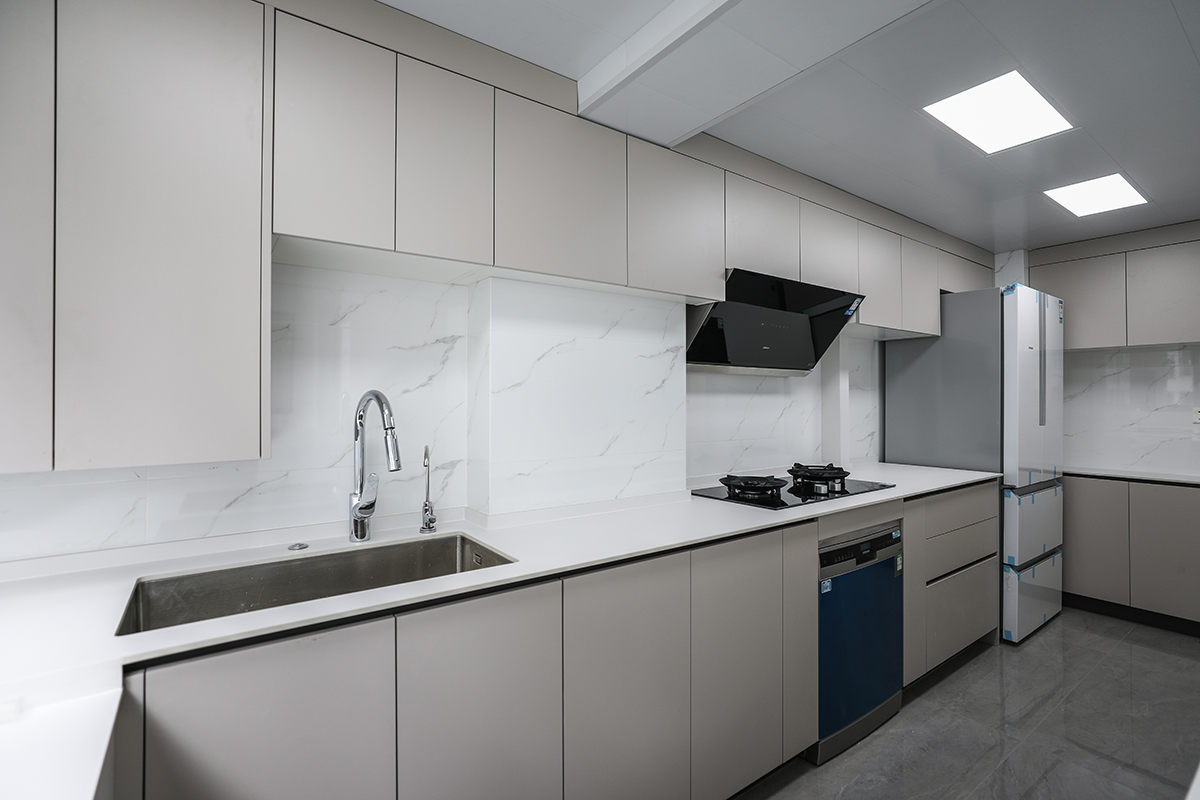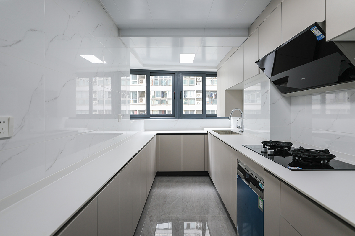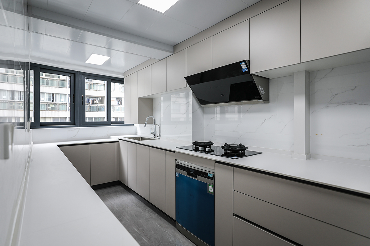 廚房采用U型櫥柜,收納空間多一倍,是一家人烹調(diào)美味,品味生活的快樂(lè)空間。