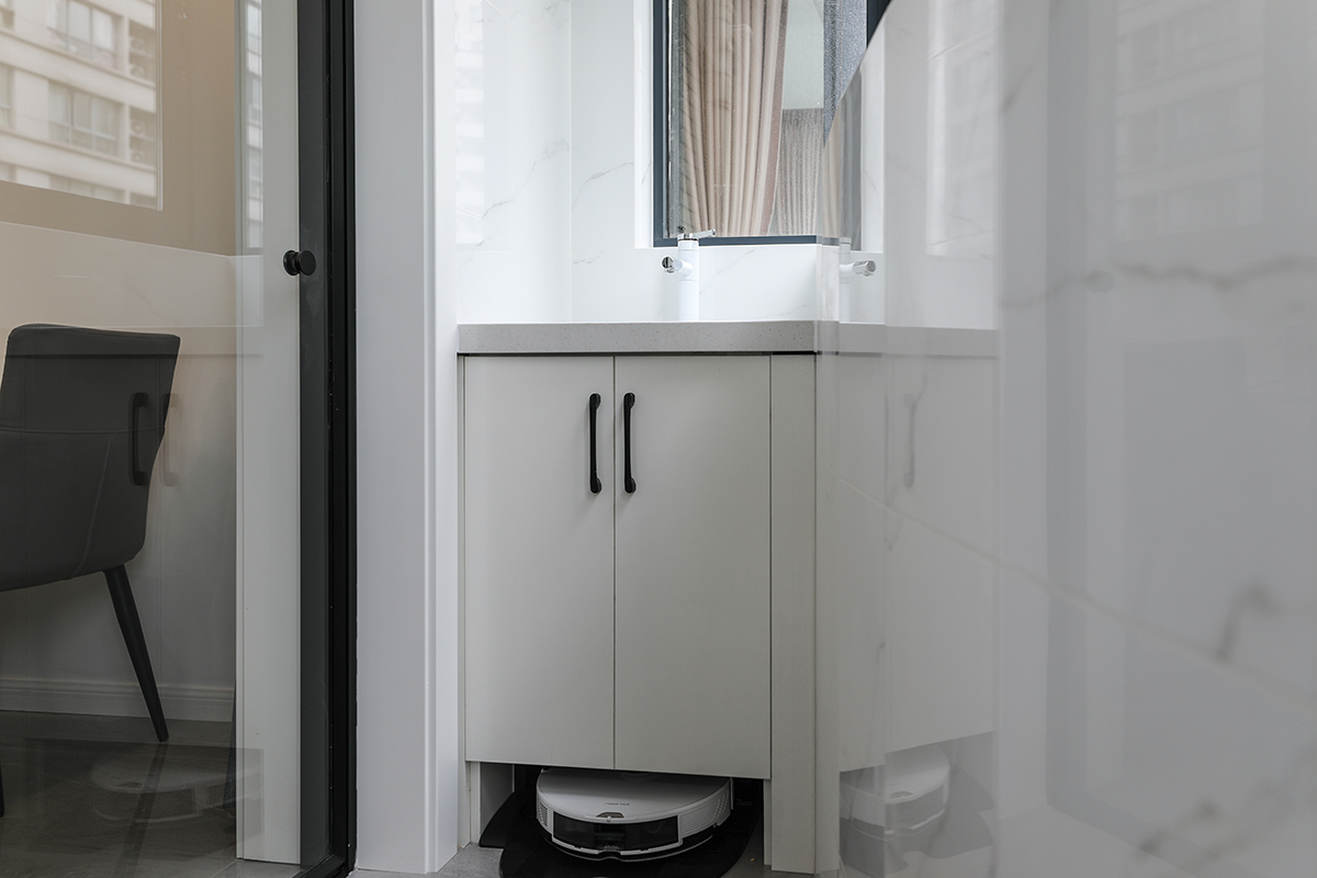 陽(yáng)臺(tái)柜底下空間收納掃地機(jī)器人,利用率十足。