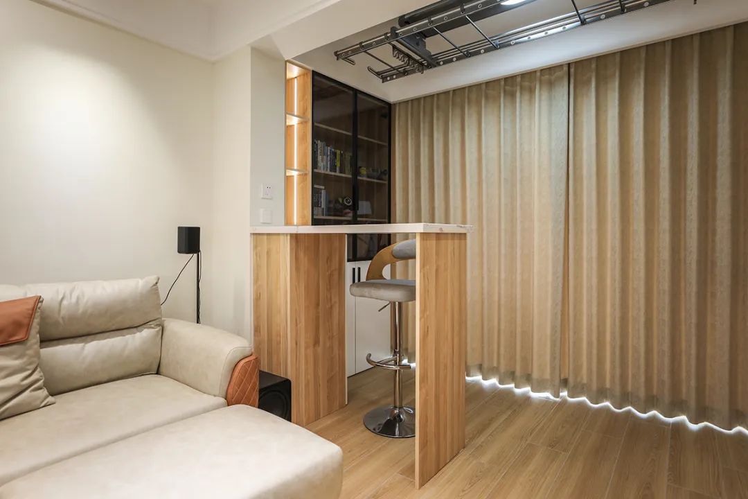 或者也可以設(shè)計(jì)一個帶收納功能的吧臺!