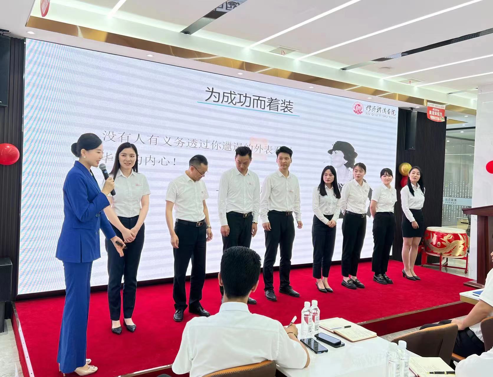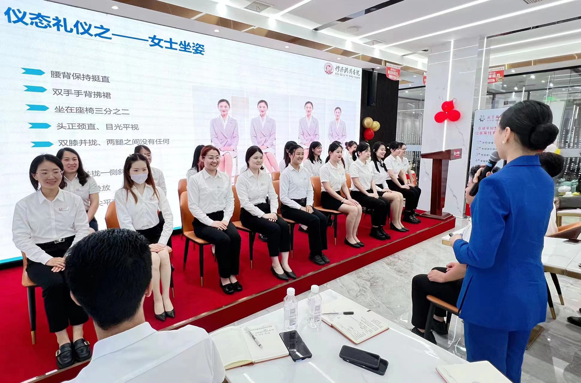 本次培訓課云蘭裝潢誠摯邀請了修齊禮儀學院的禮儀導師欒雪菲老師!云蘭裝潢總經理汪總、總部店總經理王總、各門店的行政、客戶經理以及設計師代表等共計40余人參與了本次禮儀培訓課。