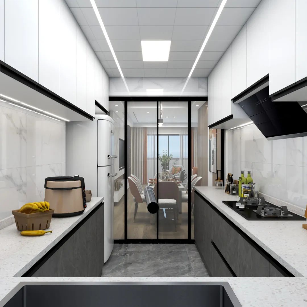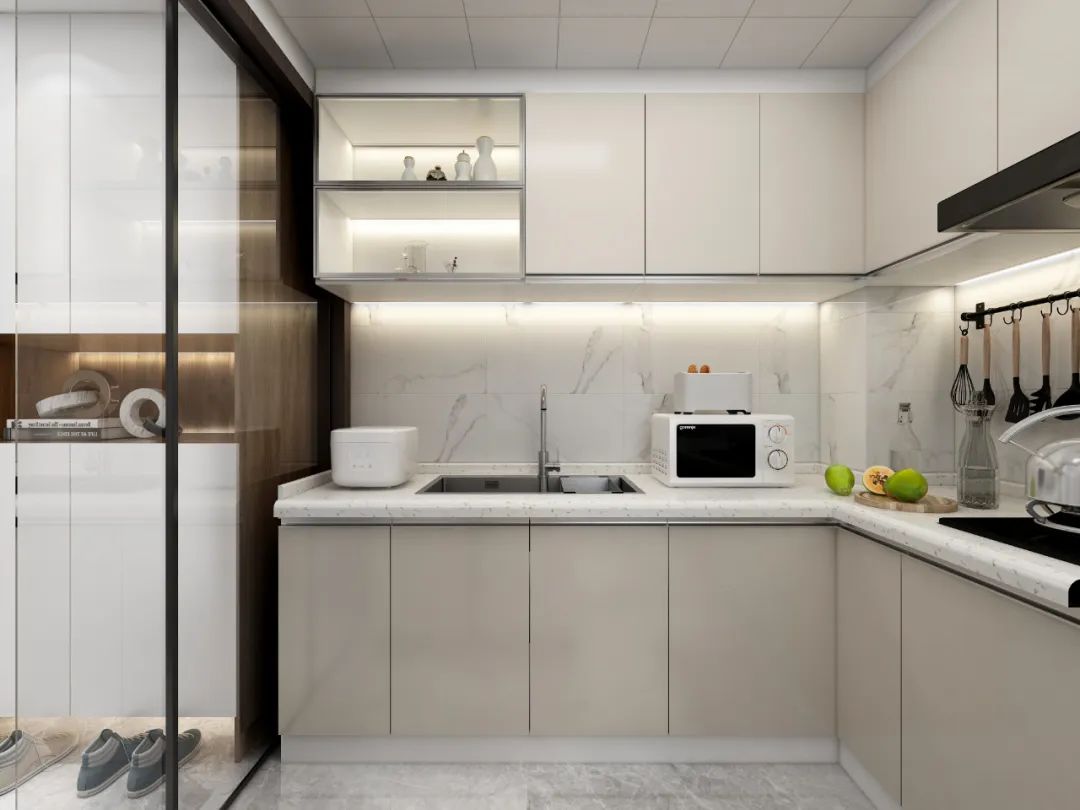 現在很多人廚房使用的都是玻璃推拉門,玻璃推拉門可以在做飯的時候增加家人的互動,同時不會讓油煙跑出來,確實是不想做開放式廚房的最佳選擇。