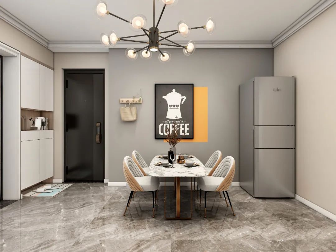 小戶型沒有多余的地方放冰箱,可以放在餐廳,拿取東西很方便,看起來也不錯~
