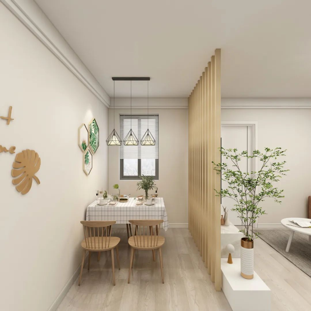 這樣一來,不僅玄關有了,柜子的收納能力也是杠杠的,而且還順帶遮擋了餐廳空間,保持了私密性。