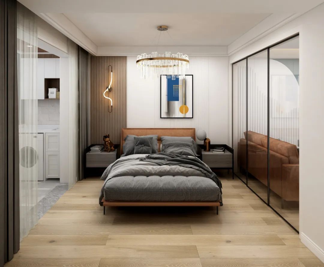 或者只是在局部加上一些木質(zhì)感的造型,比如床頭靠背和床頭柜結(jié)合的設(shè)計,還可以搭配一些藏光作為點(diǎn)綴,讓臥室變得更為奢華、大氣。