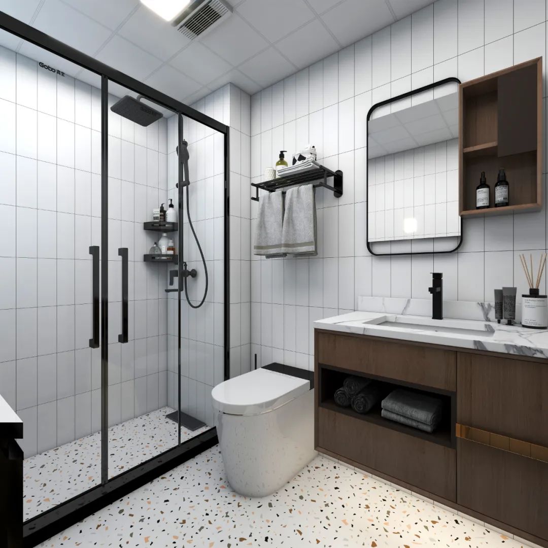 如果你對隱私有更高的要求,可以在玻璃房外加裝簾子,洗澡的時候直接拉上就行。又或者,直接選玻璃隔斷,平時不影響空間視感,洗澡也能確保水不濺出來。