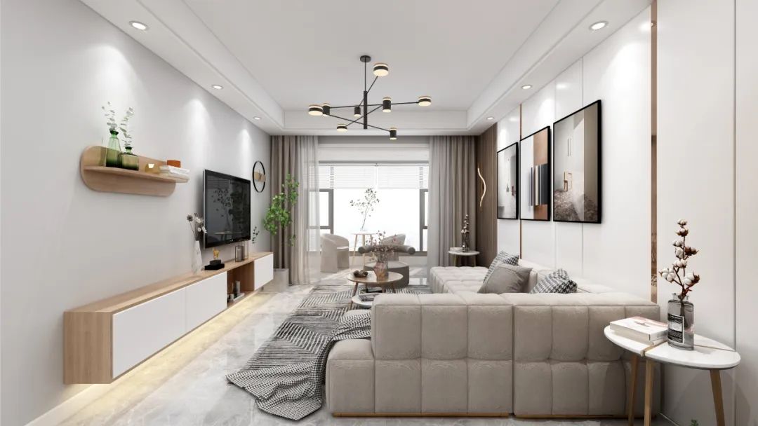 它同樣分為一字型和L型,有了這個柜子,說不夸張點,完全能滿足業主家50%的雜物收納,尤其是一字型,還能給人一種視覺上的延伸,客廳越看越寬敞大氣。