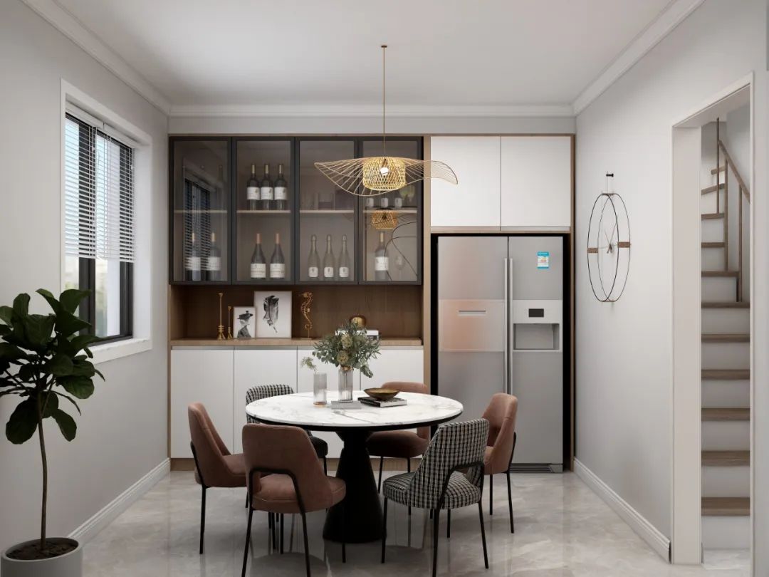 現在很多戶型進門無玄關,入戶就是餐廳,所以設計師大多選擇用一個柜子滿足兩個空間的收納功能。