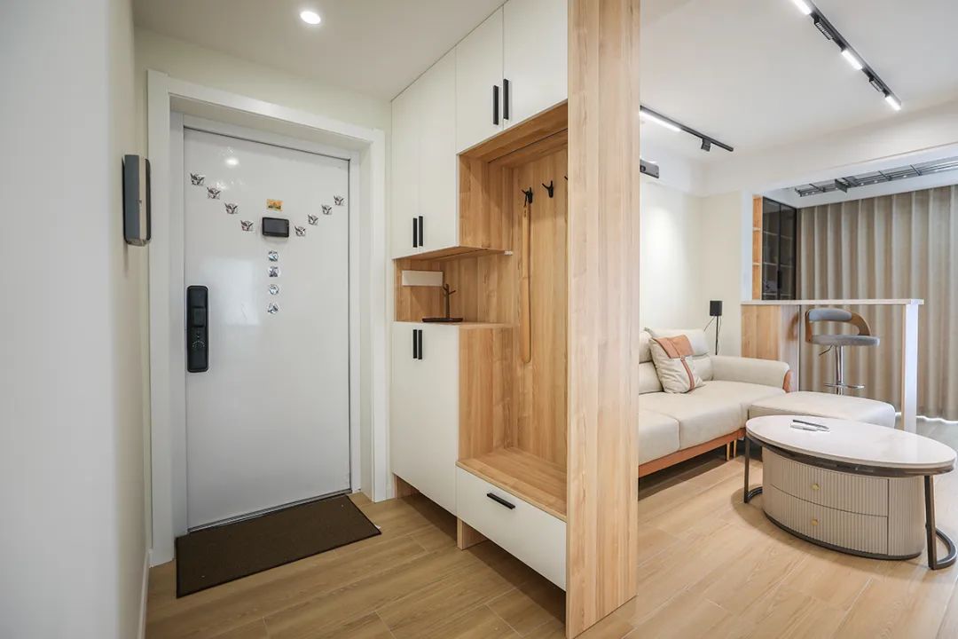 在設計玄關過道的時候,為了保證行走通暢,過道距離要保持在120cm以上,如果再做鞋柜,那么過道寬度需要在150cm以上才舒適。