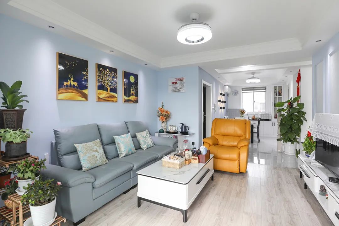 沙發與茶幾之間的距離,只要不影響正常的行動路線就可以,如果你家的客廳比較開闊,那么就擺放得寬松一點;反之,則緊密一些。一般建議40cm以上即可。