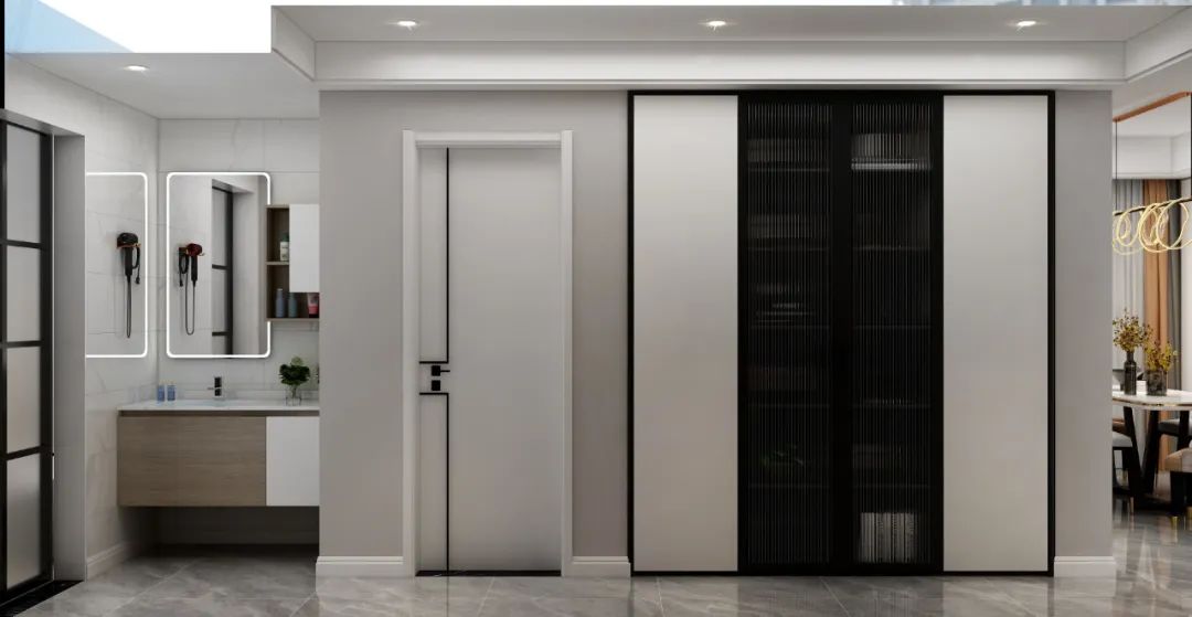 它與入戶的墻壁或者與吊頂結(jié)合設(shè)計(jì),不僅充分利用入戶區(qū)域的面積,也讓入戶空間顯得大氣又美觀。