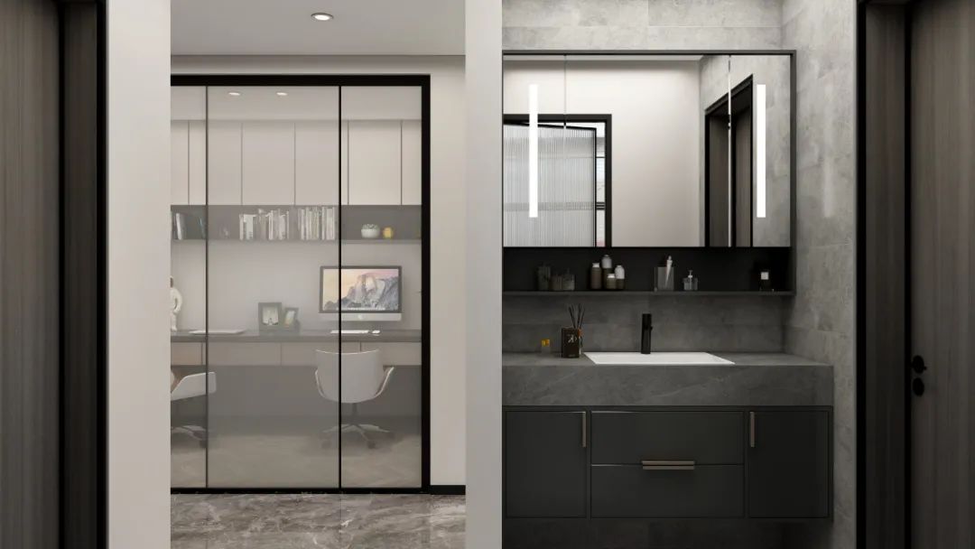 若是喜歡將洗衣機(jī)放衛(wèi)生間,可以與浴室柜搭配嵌入在衛(wèi)生間一側(cè),不僅更加整潔美觀,也可以減少磕碰,優(yōu)化動(dòng)線設(shè)計(jì)。