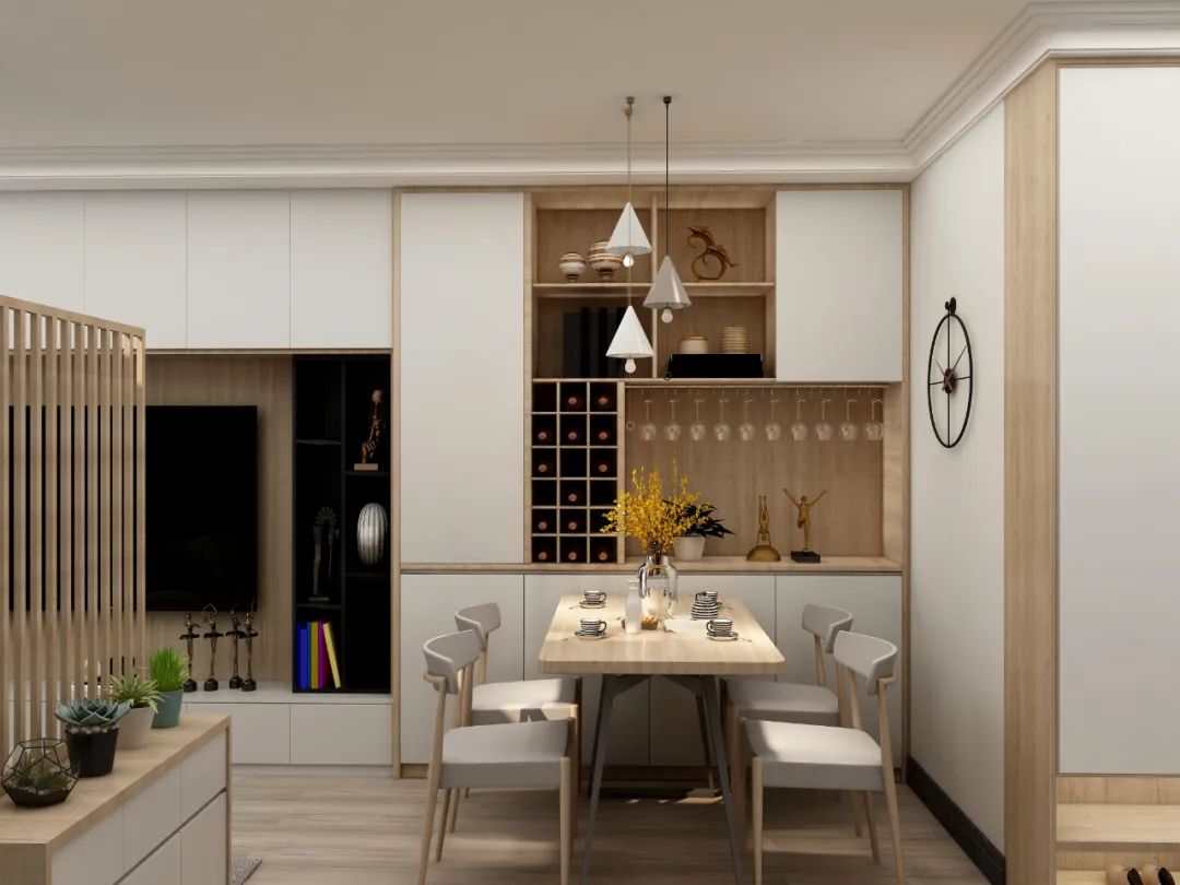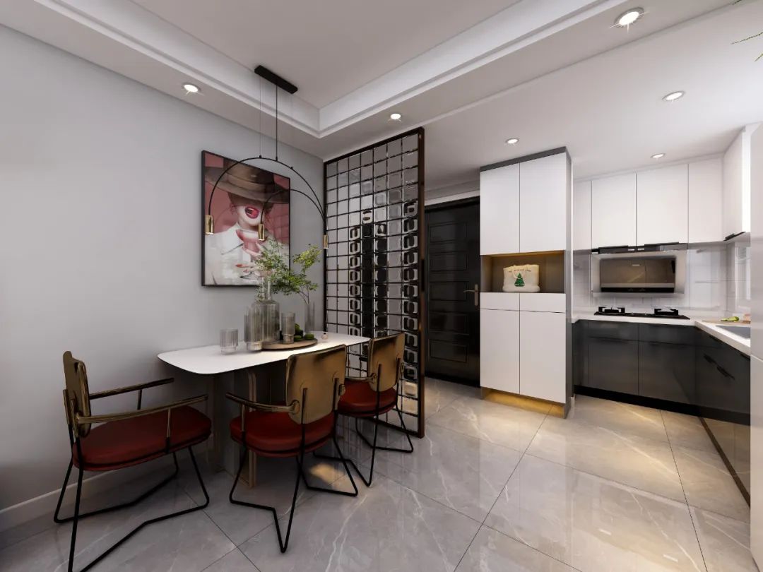 餐廳和廚房可以通過簡單的一道門分隔,這樣廚房不會占有太大空間,但是區域劃分明確。節省了很大的空間。