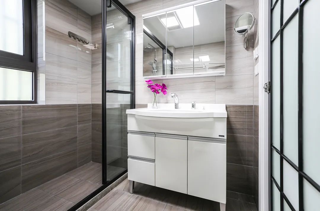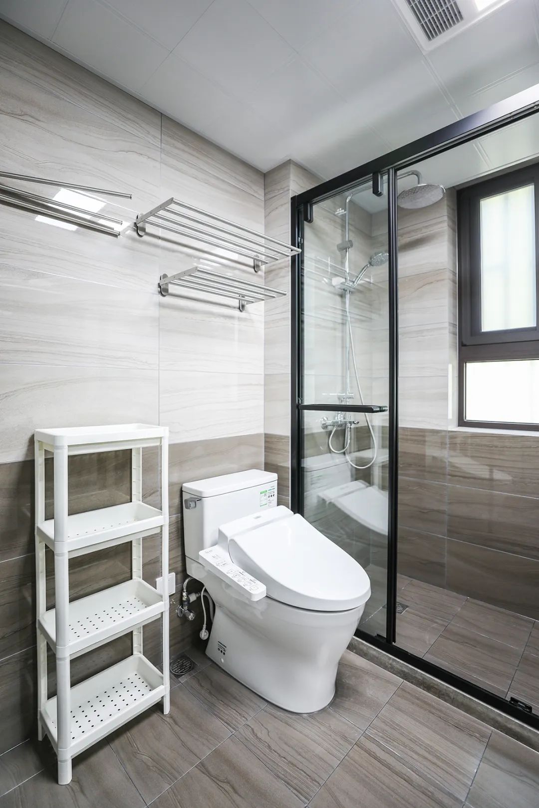 衛(wèi)生間墻地磚用了深淺色搭配,不失單調(diào)而有層次。