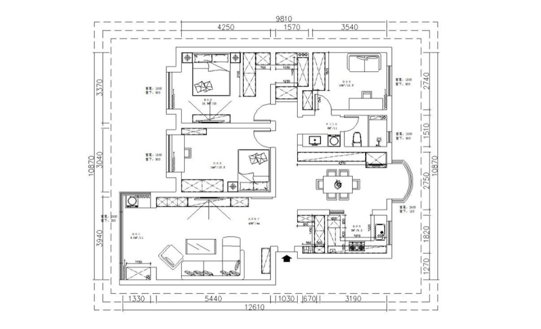 客戶三口之家,男業主是做審計,所以一開始對整體裝修都是核算的非常細致,原本的三房兩廳兩衛,后期改了三房一衛多了一個儲物間。客衛原本過大,后期改了干濕分離,加上書房的過道,原本過長的走廊縮短把主臥衣帽間擴大了。女業主非常注重儲物空間,所以在不影響視覺空間的情況下一定要多做儲物,也不希望儲物柜做的很死板,美觀也是很重要的,接下來我們看一下實景照片。
