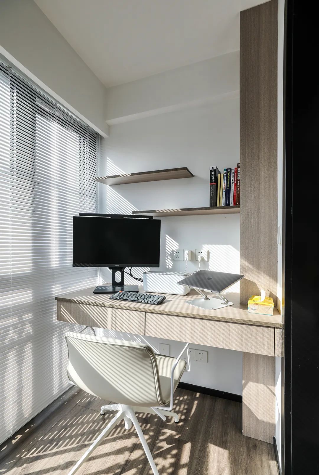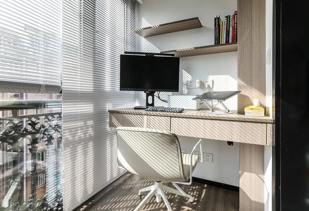 陽臺(tái)改成書房后,可以設(shè)計(jì)為半開放式的,這樣可以享受到自然環(huán)境和清新的空氣,同時(shí)也能讓書房更加宜人。