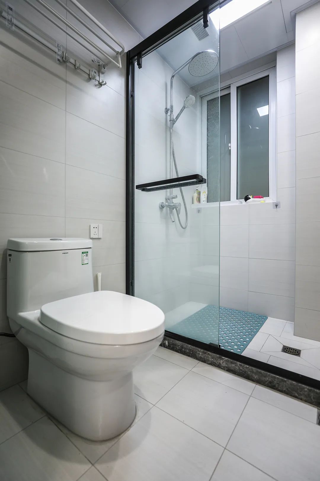考慮到衛生間的小型物品較多,所以在衛生間沒有做太過復雜的裝飾。瓷磚選用淺色調的,因為衛生間是個大面積場合,太耀眼的顏色就會顯得陰暗潮濕。