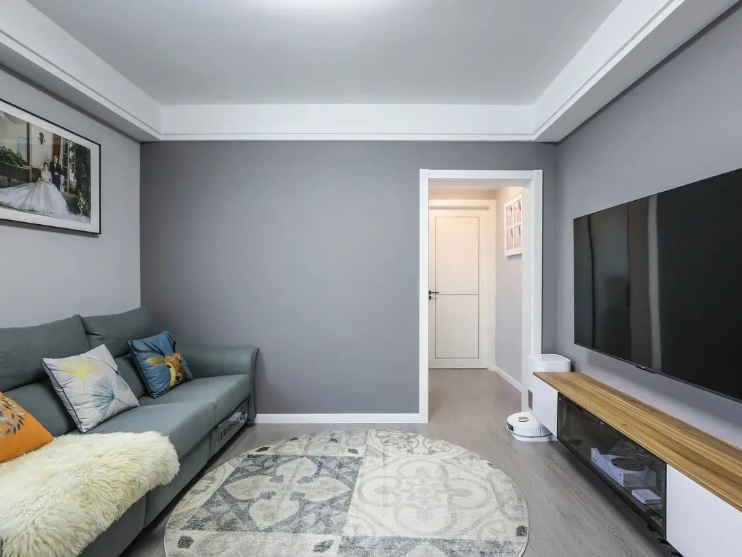 該居室專為新婚小夫妻打造,選擇舒適、自然之美,線條簡約的現代簡約裝修風格。色彩選擇上以黑白灰為主體色調,用淺灰+深灰色的搭配,表現出現代風格的大氣時尚,端莊整潔,營造一種大氣清爽、簡約而不簡單的氛圍。