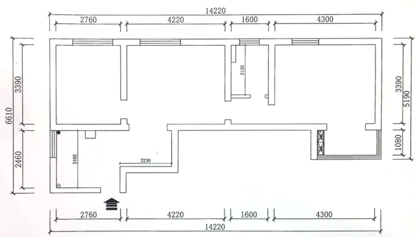 由于空間有限,進門玄關僅做了半高收納柜。收納柜的底部是鏤空設計,鏤空高度大約15厘米,是一雙高幫鞋的高度,可以很方便的進出換鞋。柜子臺面也可以放置包包、進門鑰匙等,也可以放置一些裝飾擺件美化空間。