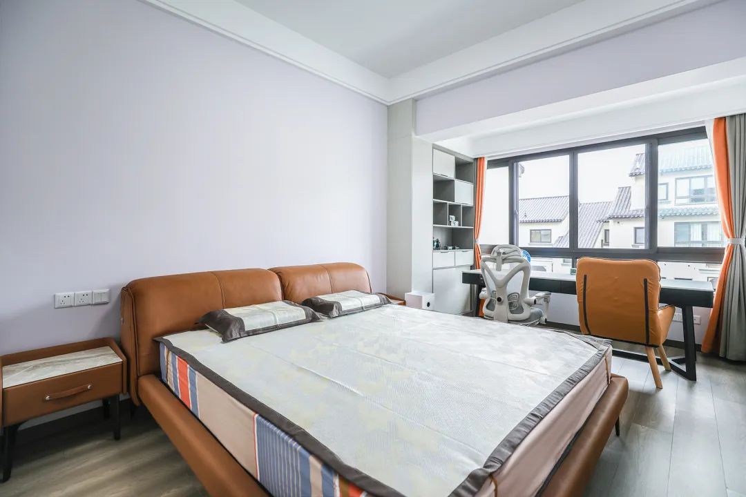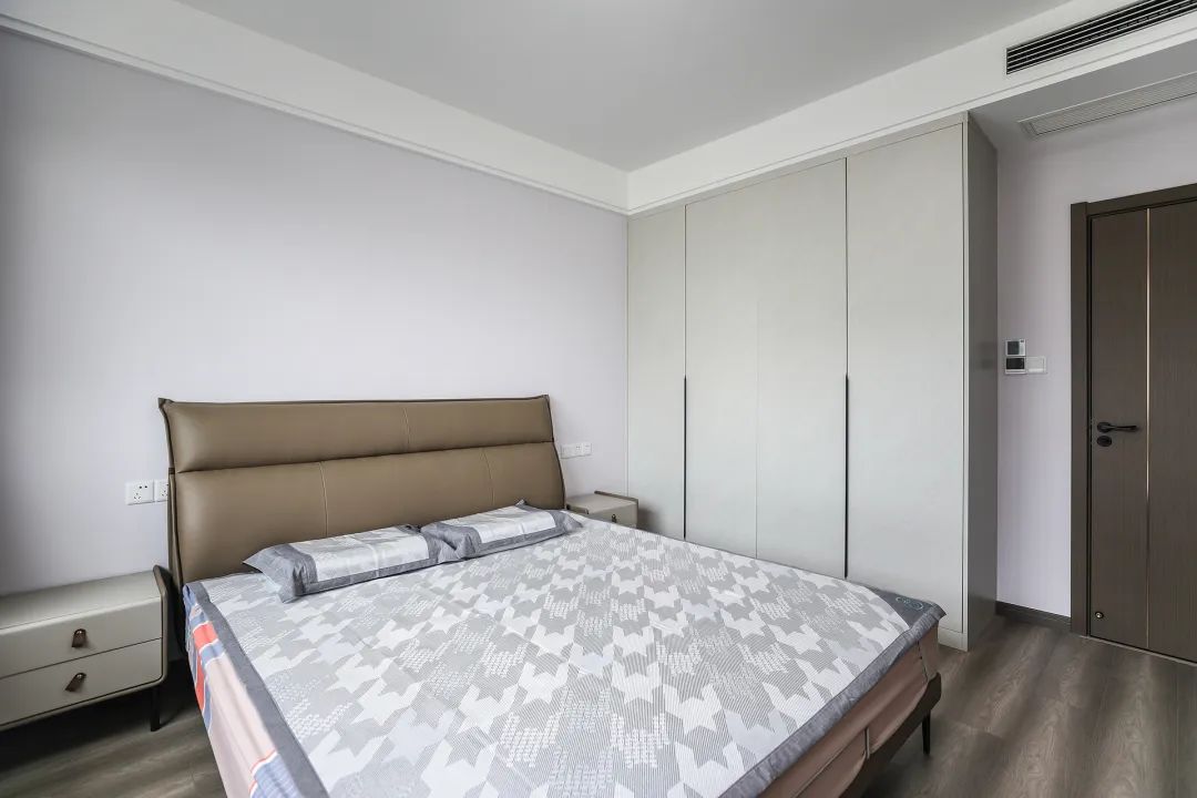 巧妙地運(yùn)用了各種元素,臥室進(jìn)門(mén)設(shè)計(jì)了收納柜,充分考慮了居住的舒適性和實(shí)用性。每一個(gè)細(xì)節(jié)的精心設(shè)計(jì),能讓人在其中感受到一種寧?kù)o與和諧,仿佛置身于一個(gè)充滿靈感與夢(mèng)幻的世界之中。