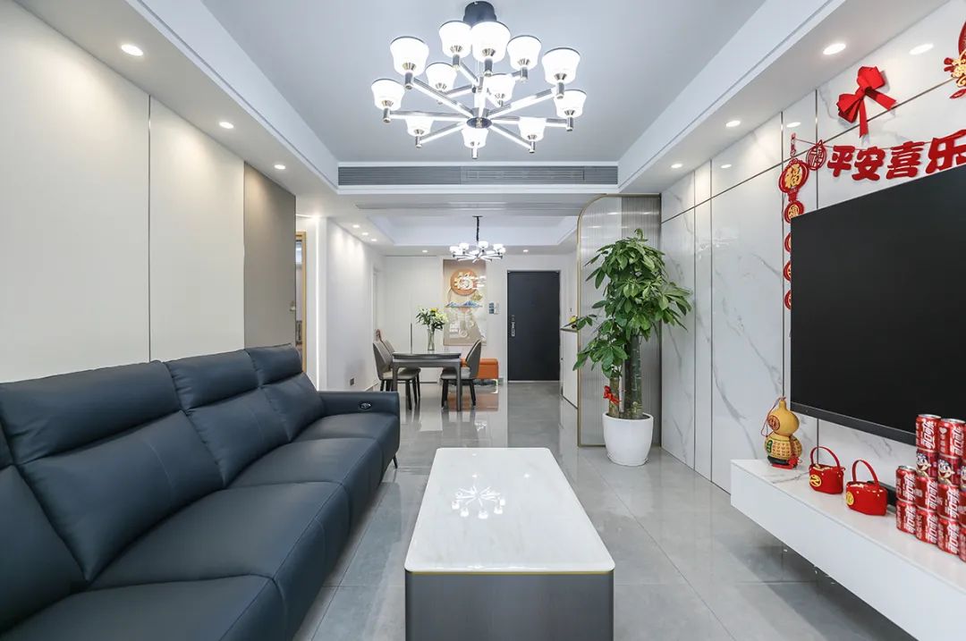 這套房是一個三口之家,主人熱情好客,家中常常有客人造訪,偶爾還會有遠方的父母前來探望,因此,增加儲物功能很有必要。為了裝修的大氣、整潔,選擇了現代輕奢風的裝修風格。這套房子為三室二廳二衛,主臥由主人居住,次臥則是由正在上小學的兒子居住,另外一間客房則隨時歡迎父母和客人的到來。