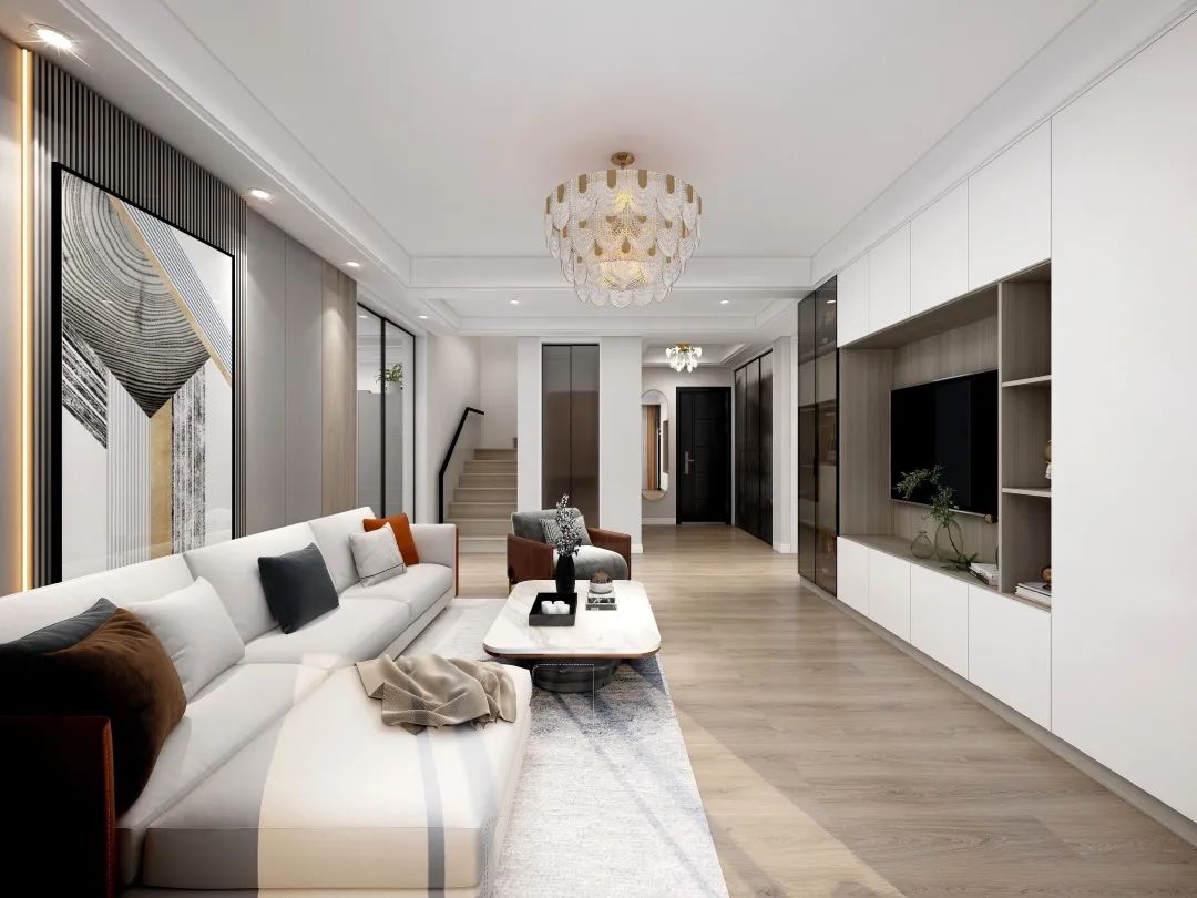 設計說明:本設計以白色為主,搭配灰色和淺灰的元素,營造出一種現代、輕奢的風格。墻面和天花板采用白色石膏板或乳膠漆,地板為淺色木地板,加上一些擺件裝飾品和定制家具,讓整個空間顯得更加高貴和典雅。