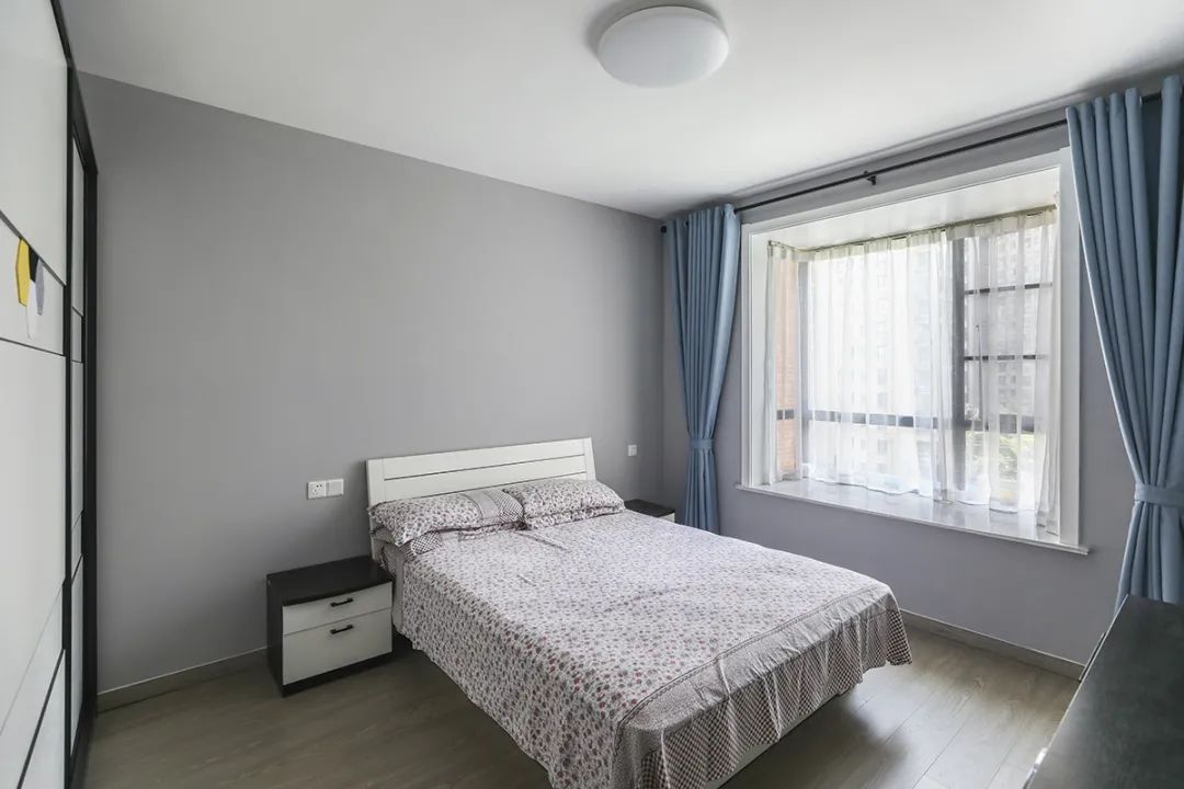 設計說明:本案著重體現簡約風中的“簡”字,打造一個自然舒適的臥室空間。整個空間沒有過多裝飾,搭配淺色調的涂料和原木色的地板,營造出自然溫馨的氛圍。軟裝方面,選擇了通頂家具和舒適的床品,讓空間簡約的同時更顯舒適。