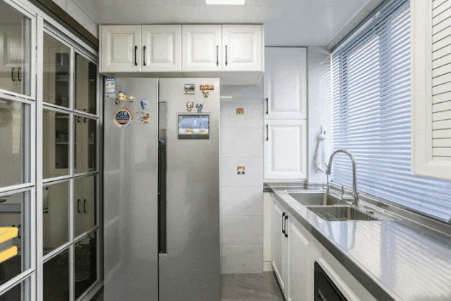 L型廚房:L型廚房是一種非常實用、便捷、舒適的廚房布局。它通常由兩個相鄰的垂直櫥柜墻組成,形成了一個“L”形。這種布局在兩面相連的墻之間劃分區(qū)域,具有很強的適應(yīng)性。可適用于不同戶型的房子,但要注意設(shè)計中要盡量避免角落空間的浪費。