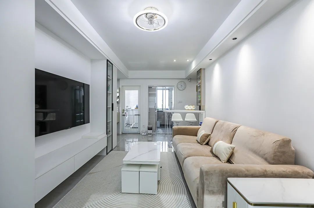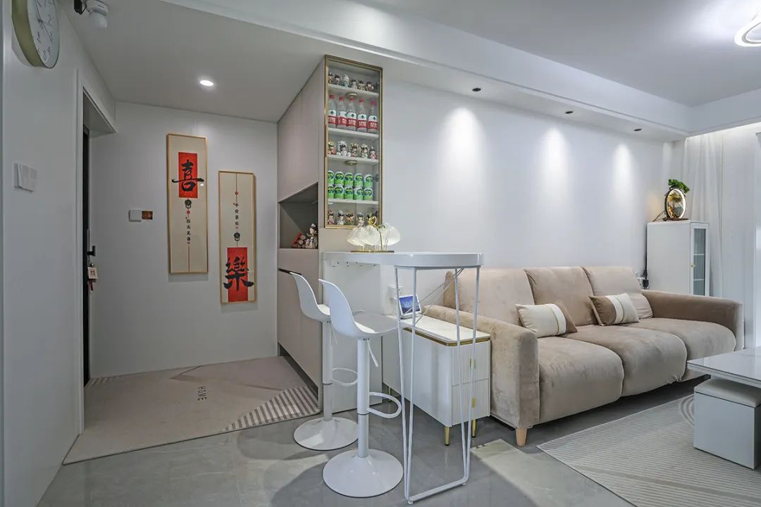 這套婚房實際面積僅為59平米,我們在打造必需功能空間時,另做出吧臺、獨(dú)立健身房、寵物區(qū)、干濕分離衛(wèi)生間,將空間直接翻倍。如果你也喜歡這種現(xiàn)代輕奢風(fēng)格,請聯(lián)系我們。我們會用設(shè)計技巧和裝修經(jīng)驗將花費(fèi)控制在預(yù)算之內(nèi),實現(xiàn)每一位業(yè)主的家居夢想。
