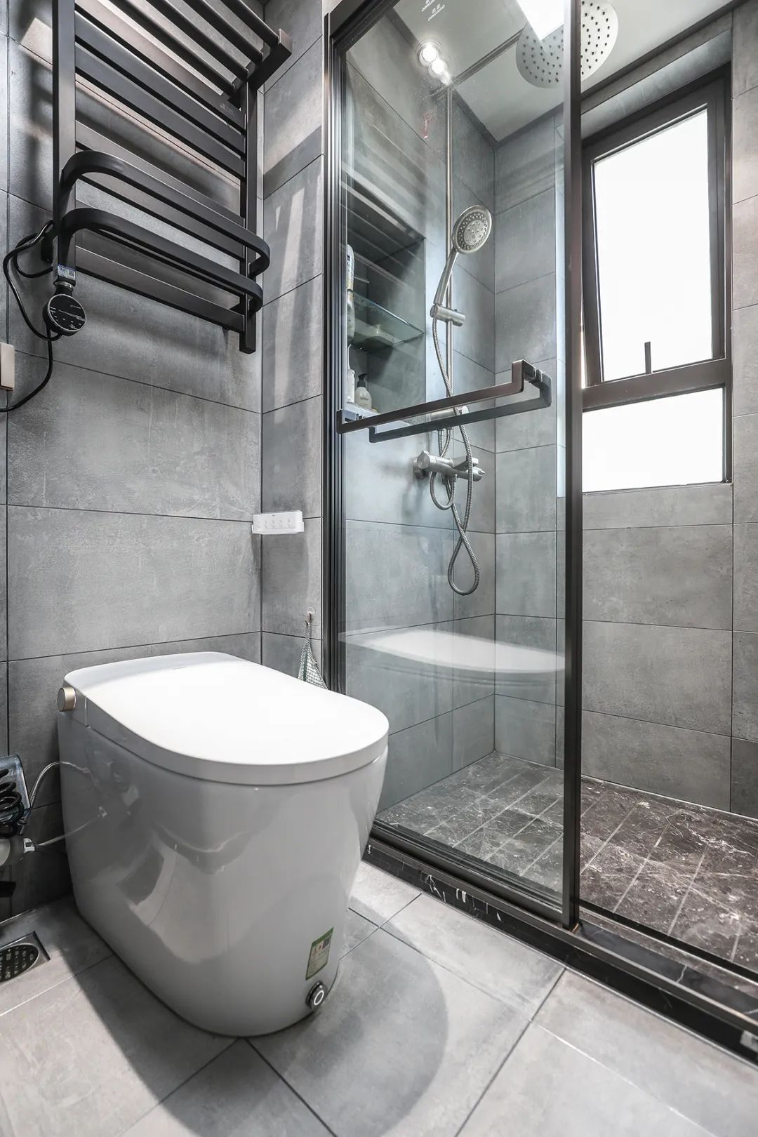 濕區精心配置了馬桶和淋浴設施,特別選用大品牌的極窄淋浴房。淋浴房采用大理石拉槽設計,使水流暢通無阻,保持淋浴區的干爽。