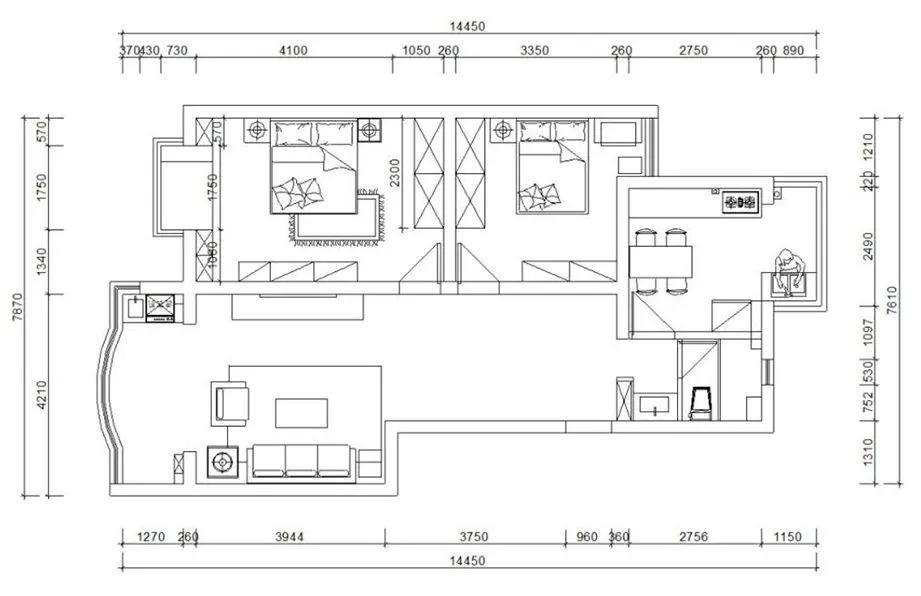 這套房子是一對退休夫婦帶著一個女兒居住,女兒是平時工作比較忙經(jīng)常出差,基本不會在家辦公,因此她的房間只需要簡單寬敞就行,對于儲物的需求不大,但是需要做書柜,平時比較喜歡看書,次臥室是老人住沒有特別的需求常規(guī)布置,客餐廳客戶要求只保留客廳即可,男主中風(fēng)剛好需要做康復(fù)訓(xùn)練每天自己在家多走動所以取消了餐桌,餐桌放到了廚房間,因此客廳呈現(xiàn)的感覺就是簡潔大氣。