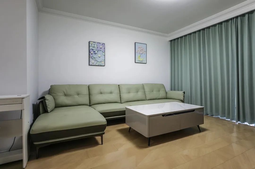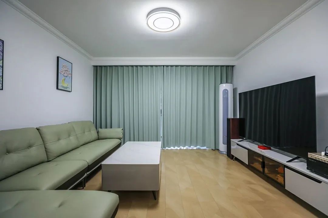 沙發(fā)背景也沒有多余的裝飾,讓空間不但時尚而且清爽。留白設(shè)計,色調(diào)上沙發(fā)和窗簾用淺色,整體淺色為主,既溫馨又簡潔。