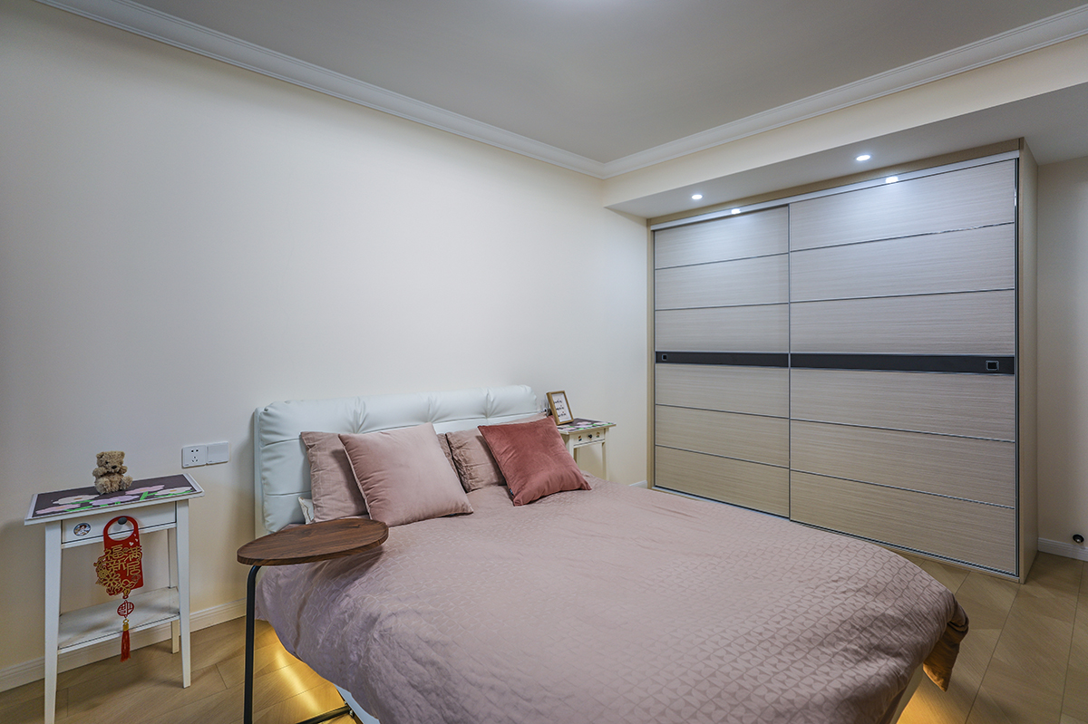 臥室整體風(fēng)格就是簡單色調(diào)溫馨,體現(xiàn)了女主的簡單直爽的性格。