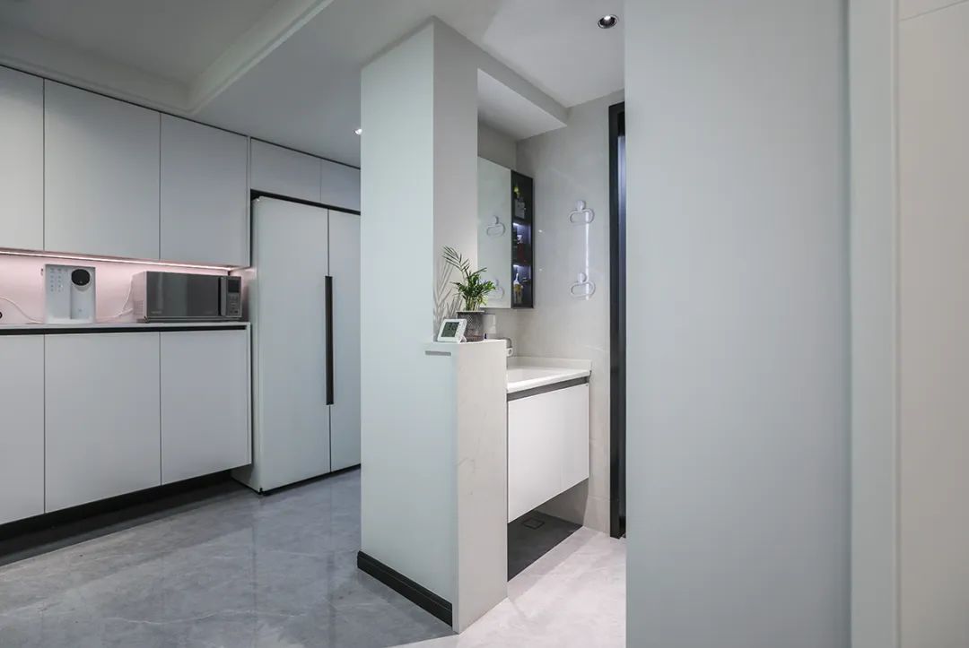 衛生間作為家中的重要功能區,其設計需要充分考慮通風與實用性的平衡。我們將鉆石形淋浴房靠窗擺放,利用窗戶的自然通風,有效排除濕氣。考慮到衛生間的空間布局和功能性需求,我們在淋浴房的兩側分別放置了馬桶和臺盆。這樣的布局不僅充分利用了空間,還確保了日常使用的便利性。特別是在早晨或晚上,這種布局可以減少動線的交叉,讓使用過程更加流暢。