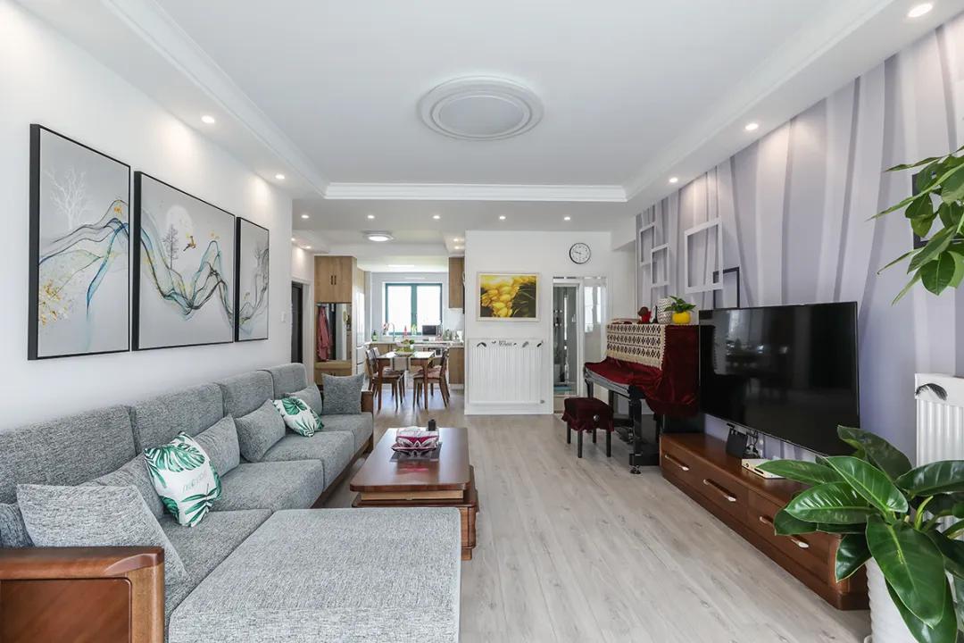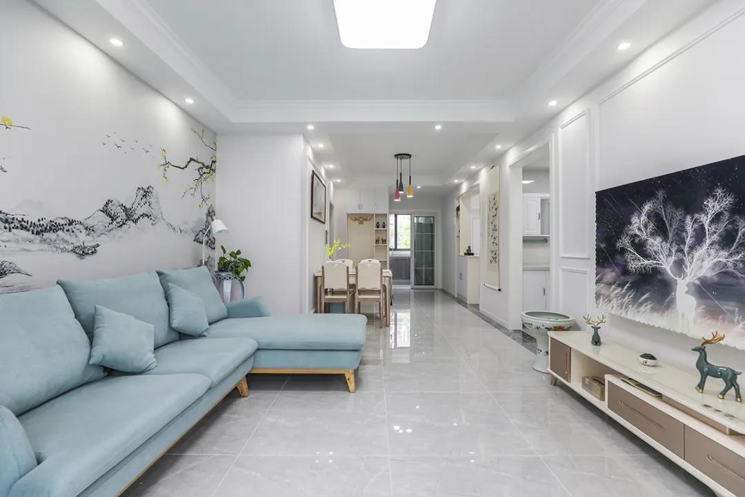 客廳采用統一的瓷磚鋪設,可以減少視覺上的隔斷,使空間看起來更加統一和連貫。