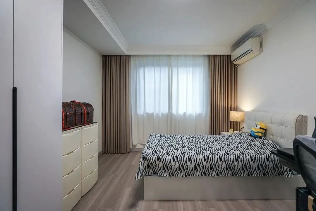 該項目房子面積為95個平方,業主裝修預算不是很多。由于是磚混結構的老房子,存在破裂、滲水等諸多問題,我們在修繕工程上花費了不少預算。所以該套房主要裝修難題在于怎樣用僅剩的裝修預算做大戶型房子,并確保美觀和品質。核算下來,能以極低的預算做出這樣的品質和效果,相信在裝修行業內找不出第二家。