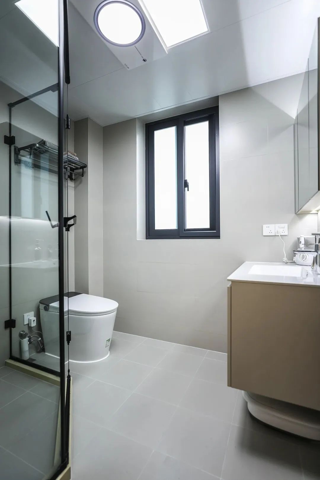 為了提高空間利用率,我們將馬桶和臺盆分別放置在淋浴房兩側。不僅提高了空間的利用率,還讓動線變得更加流暢,方便業主在衛生間內進行各種活動。