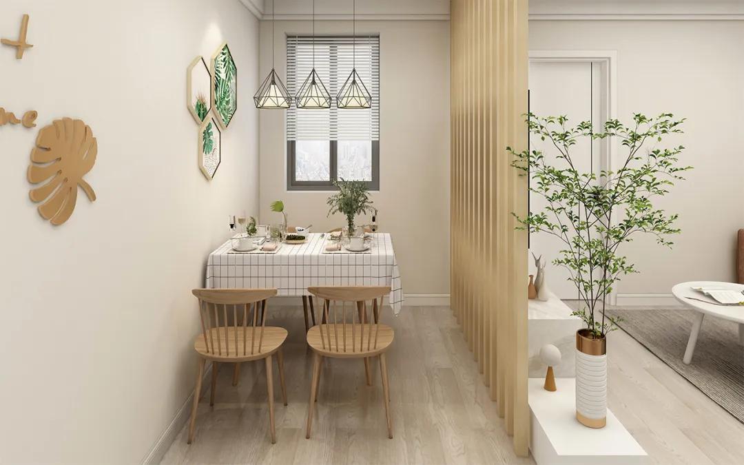 這款案例柵格木質材質的隔斷作為餐廳與客廳之間的隔斷。木質柵格隔斷兼具裝飾性和實用性,可移動設計使空間布局靈活,適應不同聚餐氛圍。