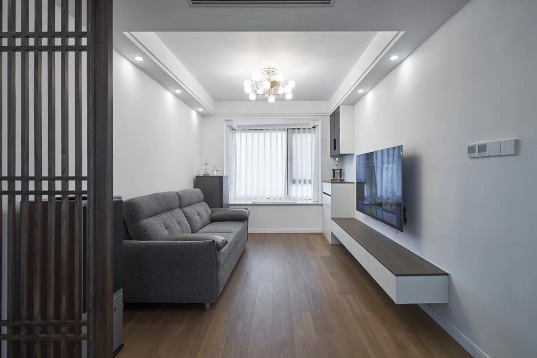 電視柜的設(shè)計簡潔實用,不僅提供了放置電視的空間,還增加了儲物功能。木質(zhì)屏風(fēng)與現(xiàn)代風(fēng)格的客廳相得益彰,既起到了裝飾作用,又劃分了空間。