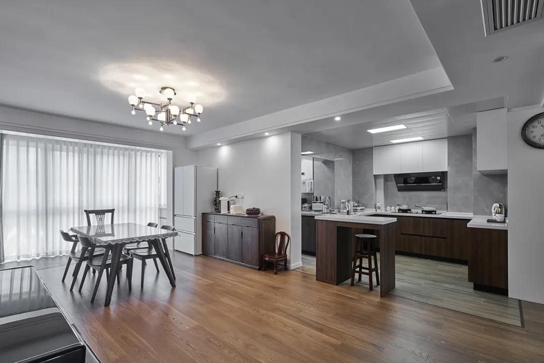2、客廳和餐廳定制木質(zhì)家具,結(jié)合現(xiàn)代與傳統(tǒng)元素,提升空間的溫馨感和文化韻味。